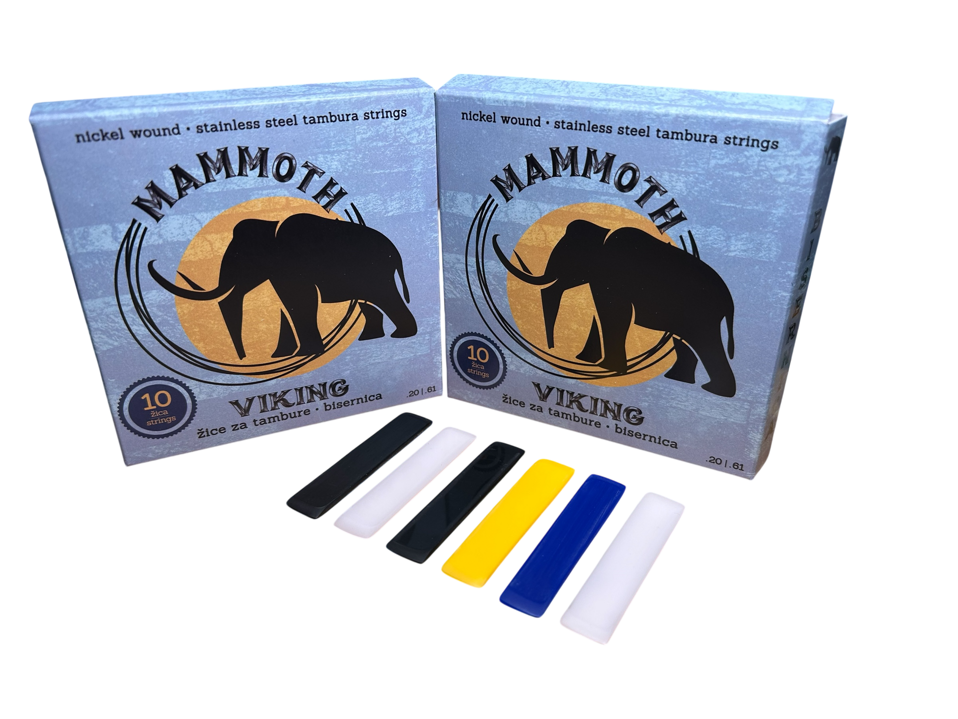 Viking paket za bisernicu sadrži dva kompleta Viking žica za bisernicu od 10 žica i komplet od 6 različitih plastičnih trzalica. U Viking paketu možete birati između tri dimenzije trzalica - 01, 020 ili 021.